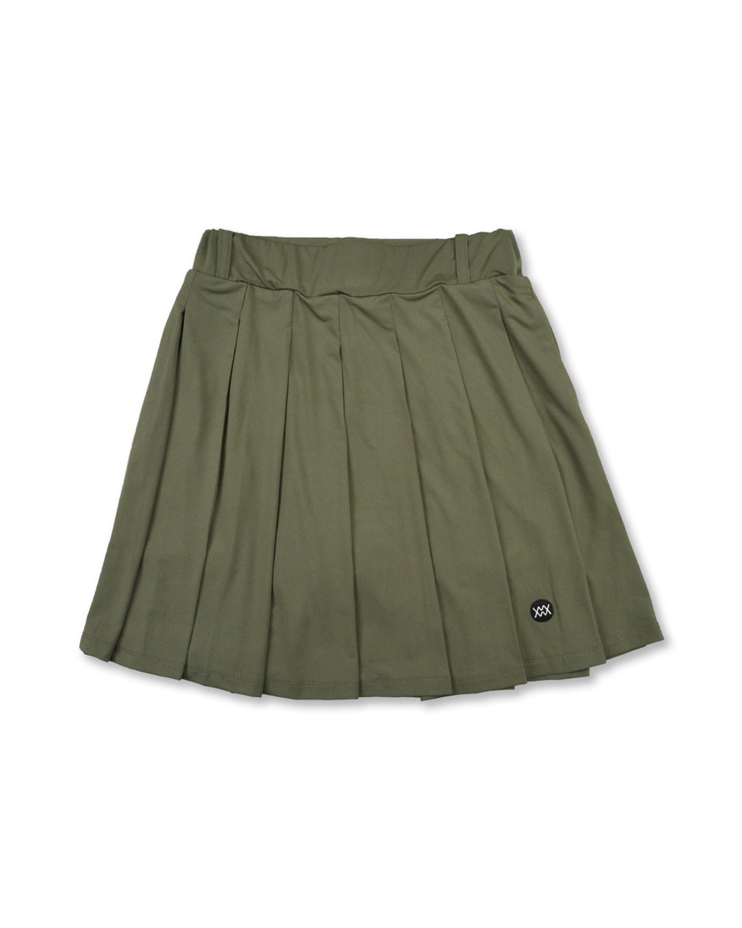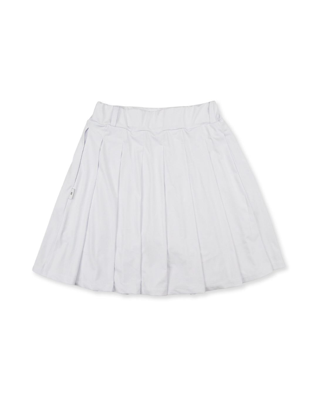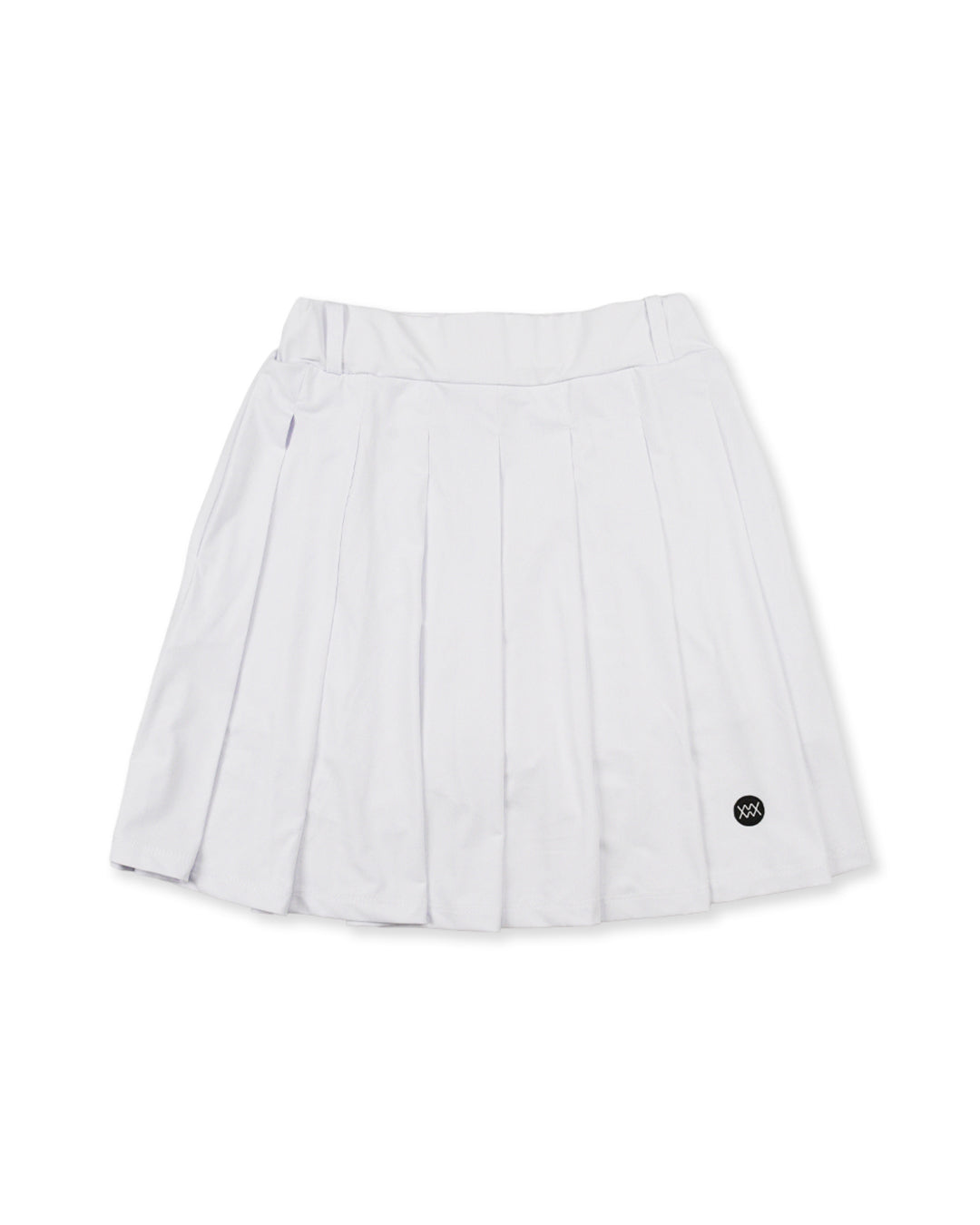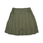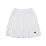 スイング時のシルエットが綺麗なプリーツフレアスカート。ウエストゴムなのでSサイズで表記より約+10センチ伸長します。両サイドにポケットを配置した事によりラウンド時の小物収納も可能。シンプルなワンポイントでコーディネートの幅が広がるスカートです。