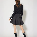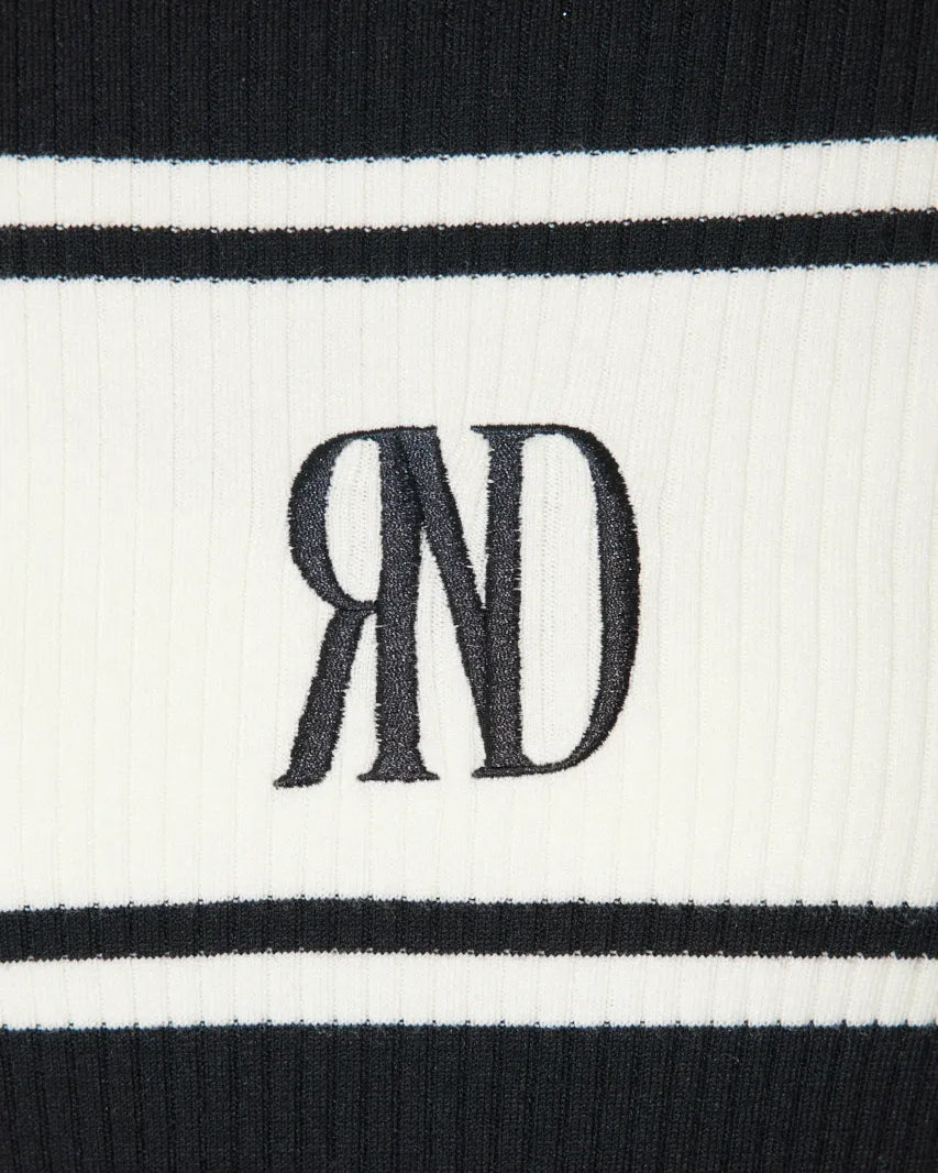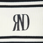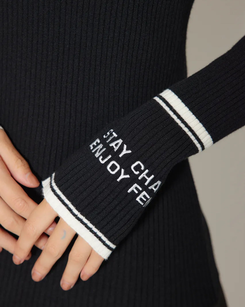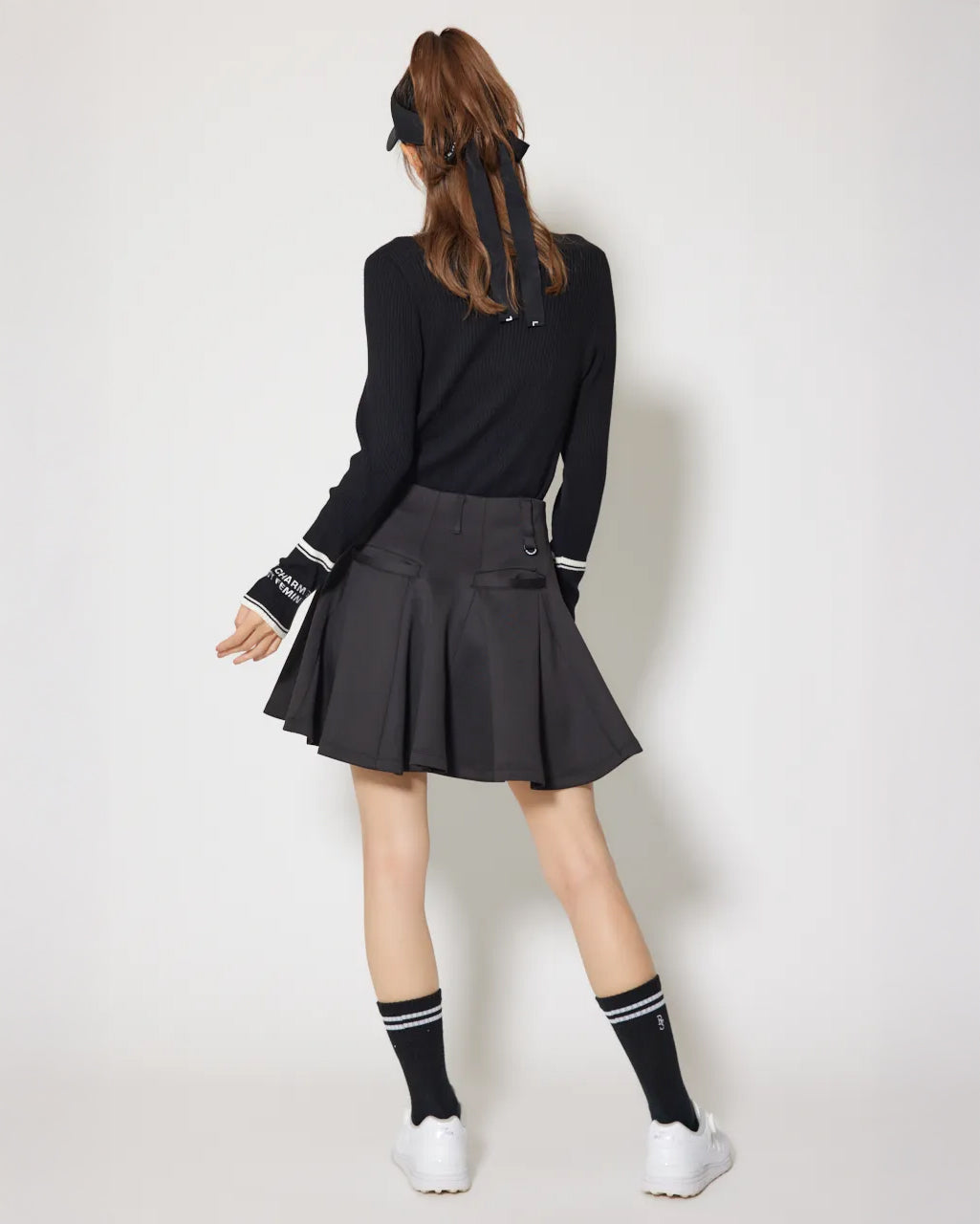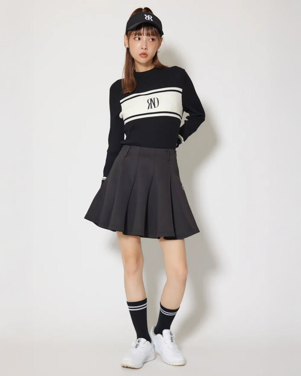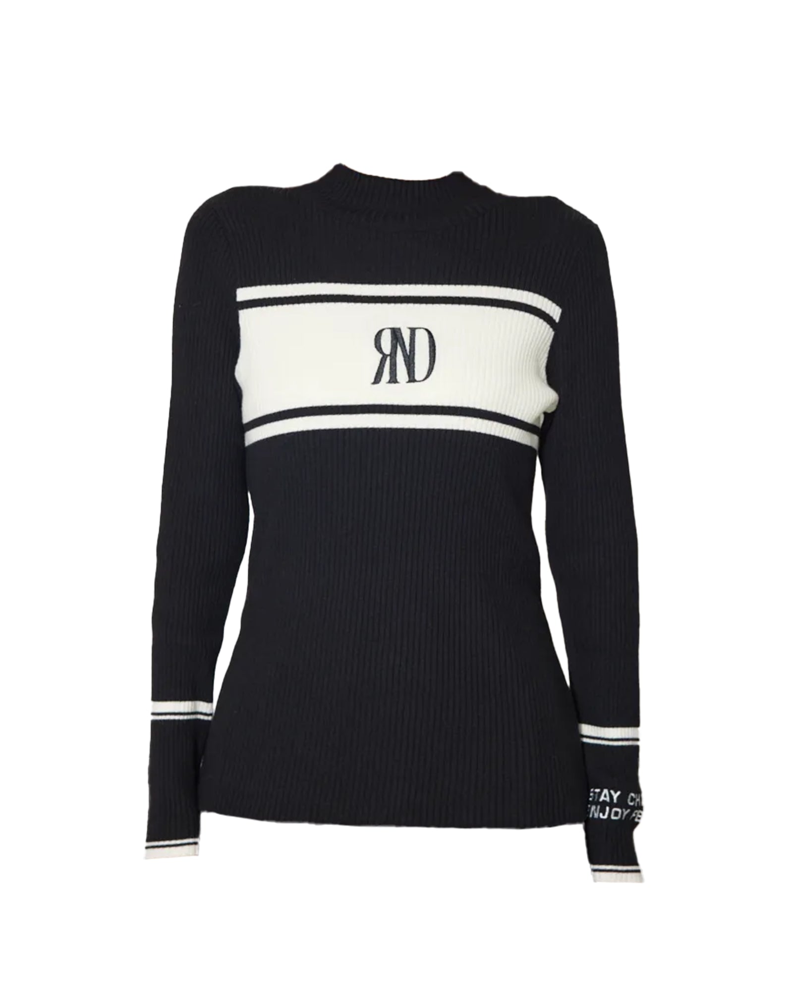 ハイネックなので、首元も暖かく着用できます。フロントのロゴは大きすぎずないサイズ感なので、ボトムスに無地・柄どちらがきても着合わせしやすいです。また、刺繍でデザインにすることで立体感を出し、華やかさも演出。袖口にラインディテールを入れることで、手首がシャープに華奢見えするデザインにしています。
