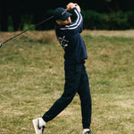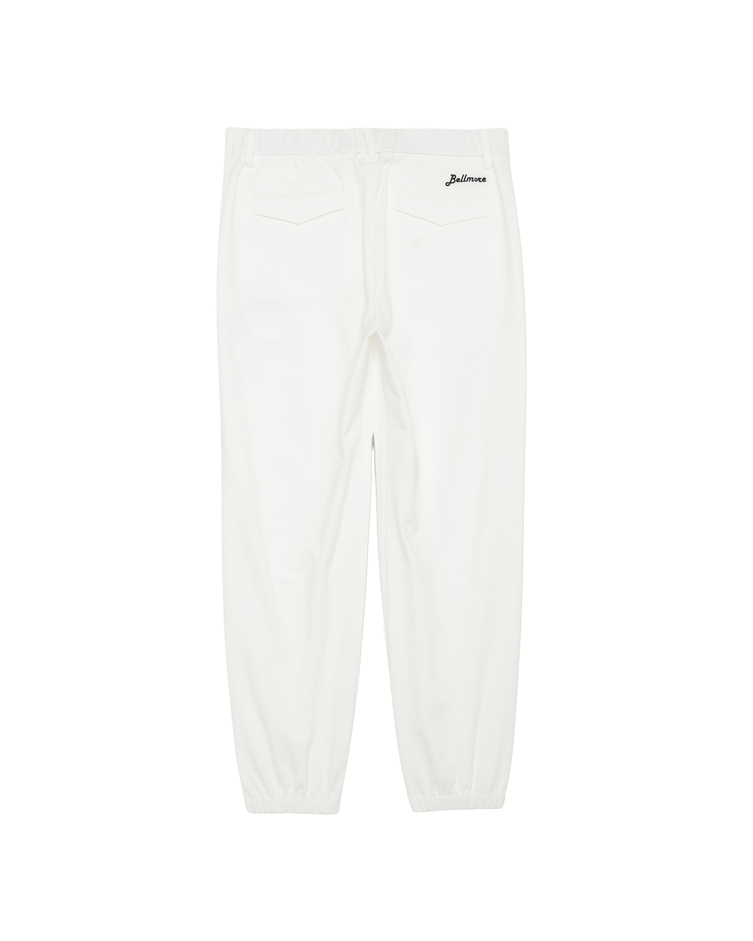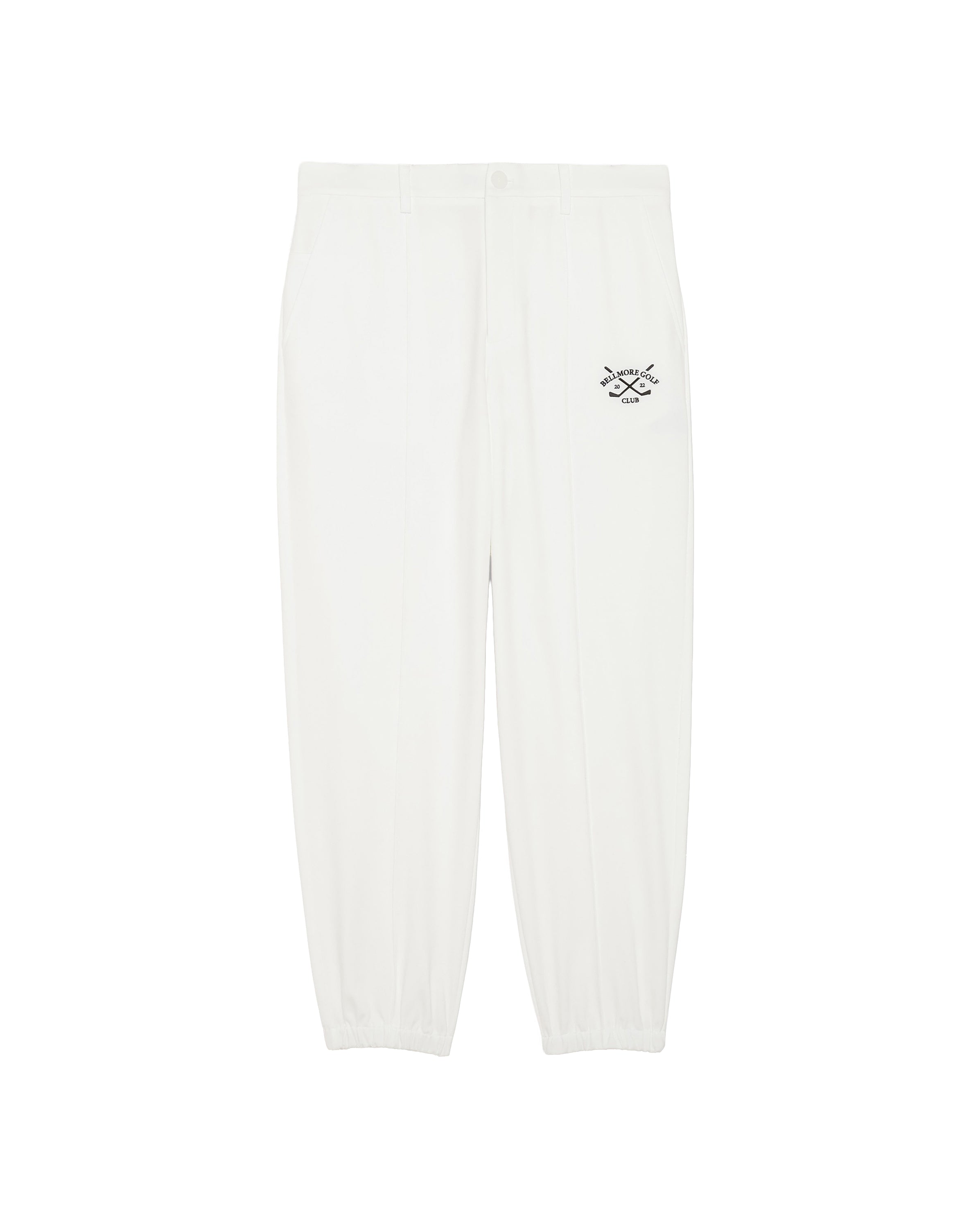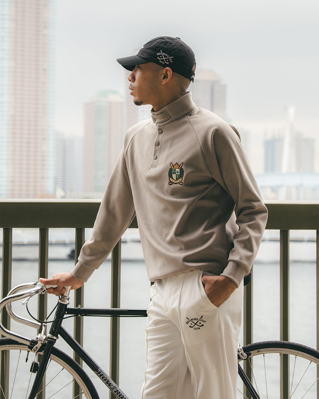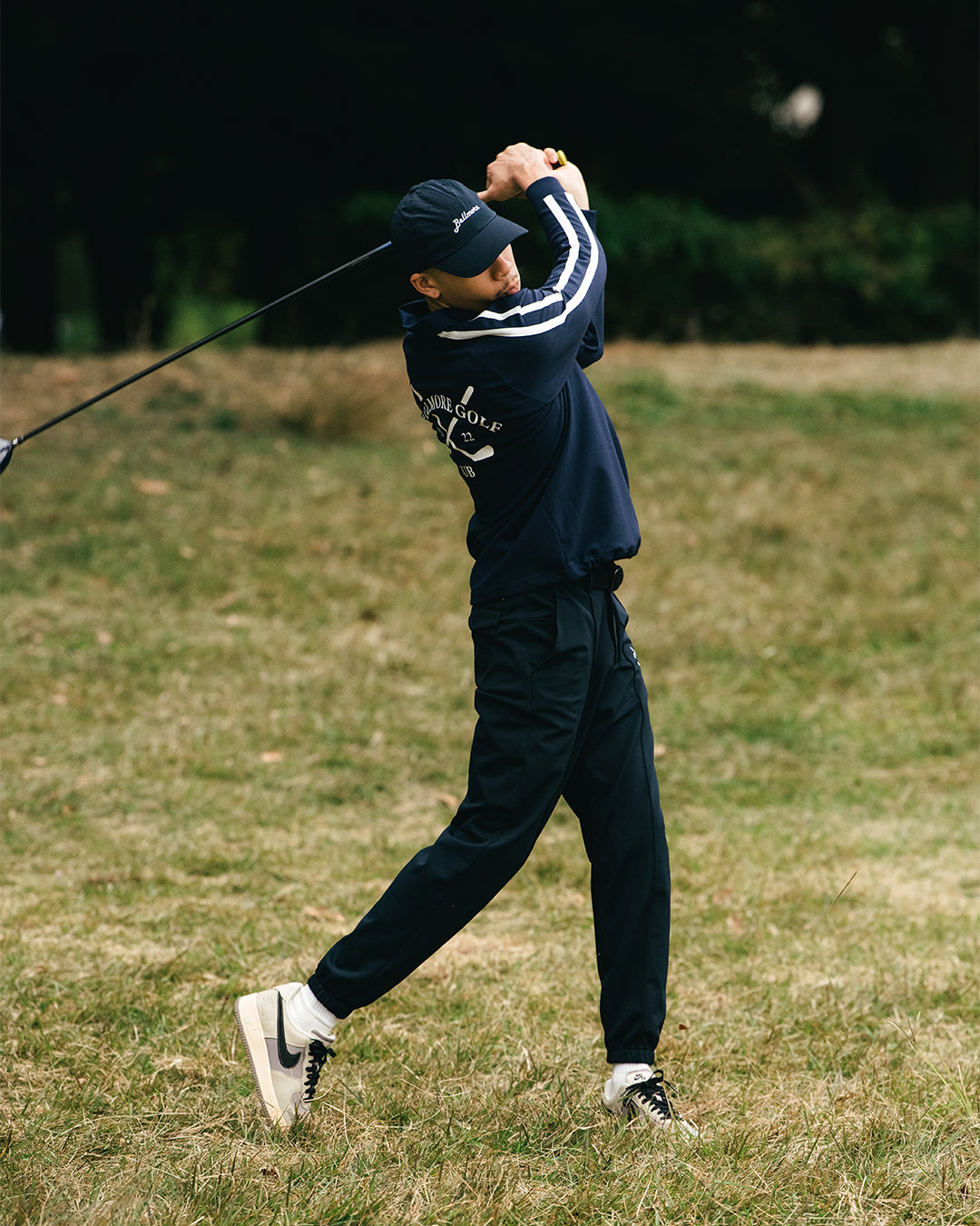 ブランド初となるジョガーパンツになります。保温性に優れていて、ストレッチが効いた生地を使用。腿部分と後身ウエスト部分に刺繍でロゴを配置しています。