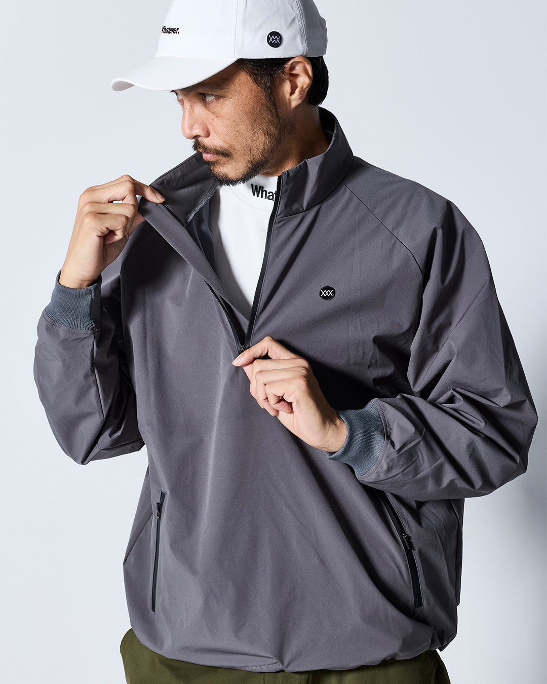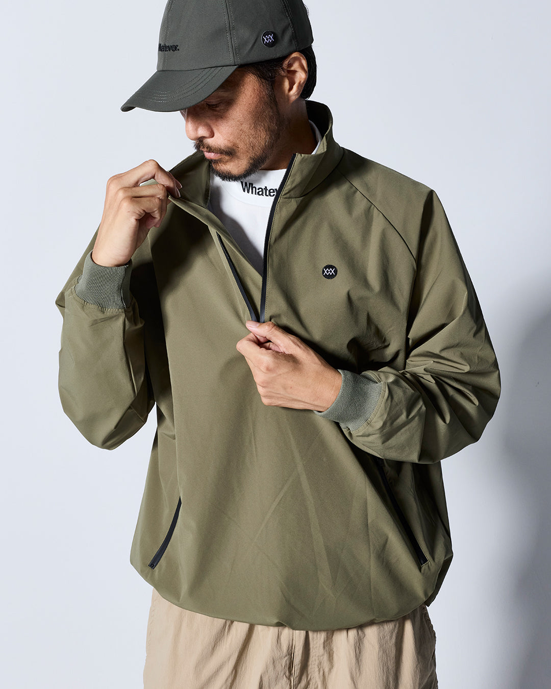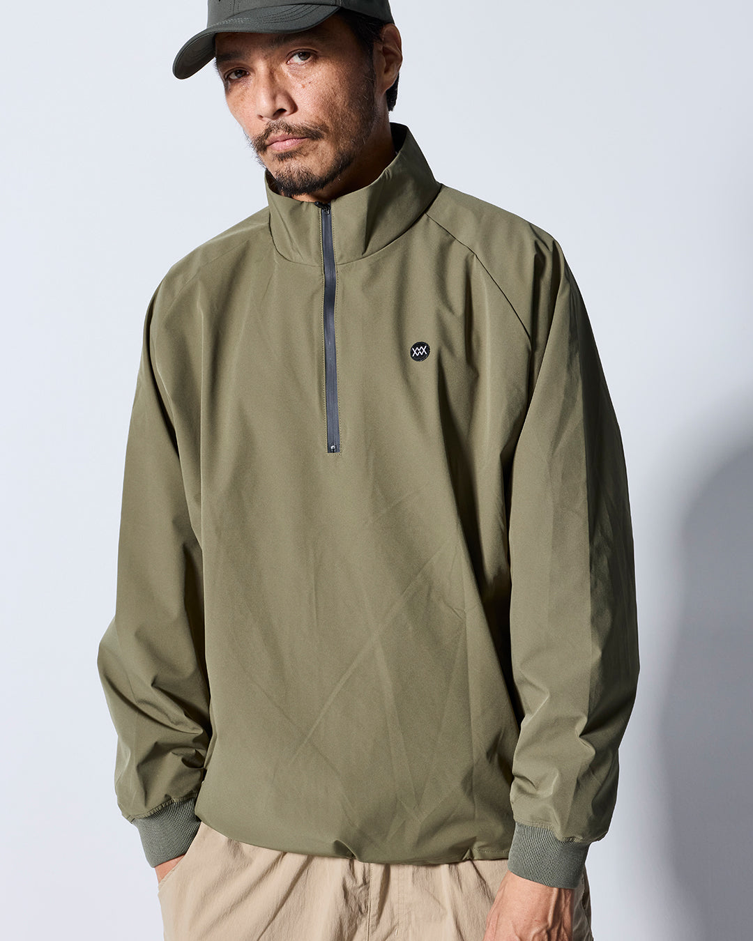 防風素材を使用した保温性の高いハーフジップジャケット。やや寒くなる秋口の温度調整の一枚から、薄手の真冬アウターとしても活躍する一枚。襟は高めで開口広めなのでネックウォーマーやマフラーを首回りに仕込む事が可能です。
