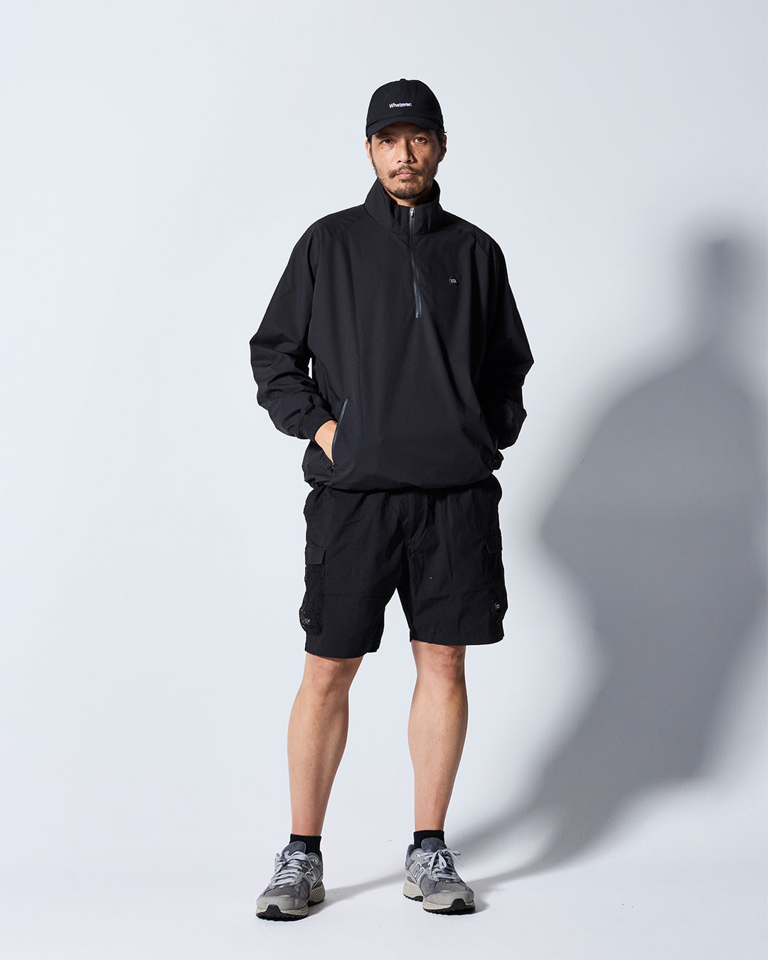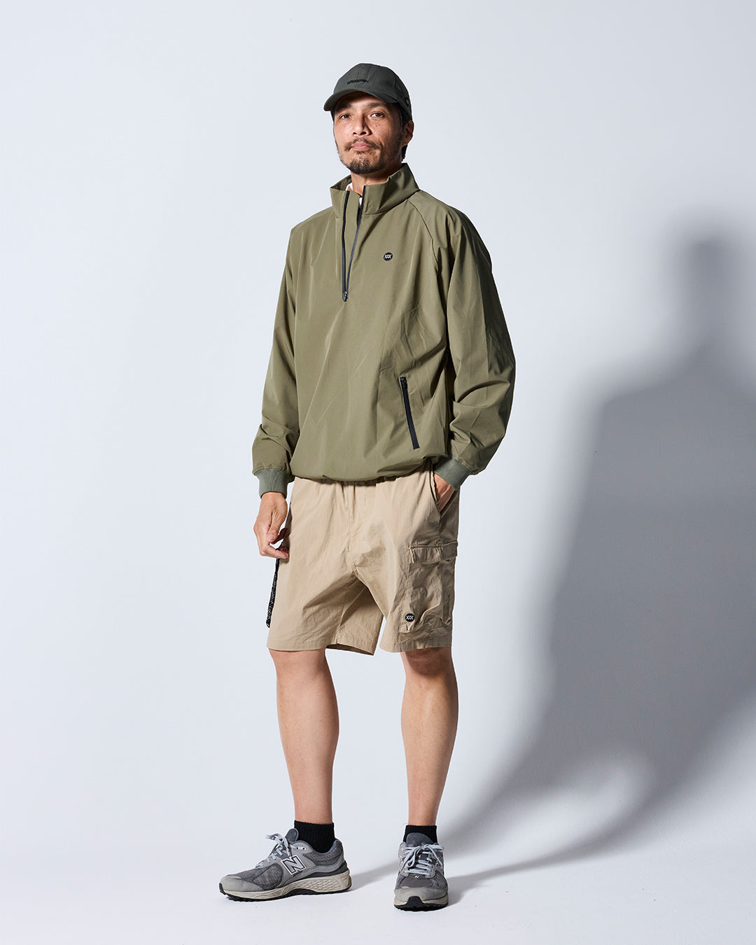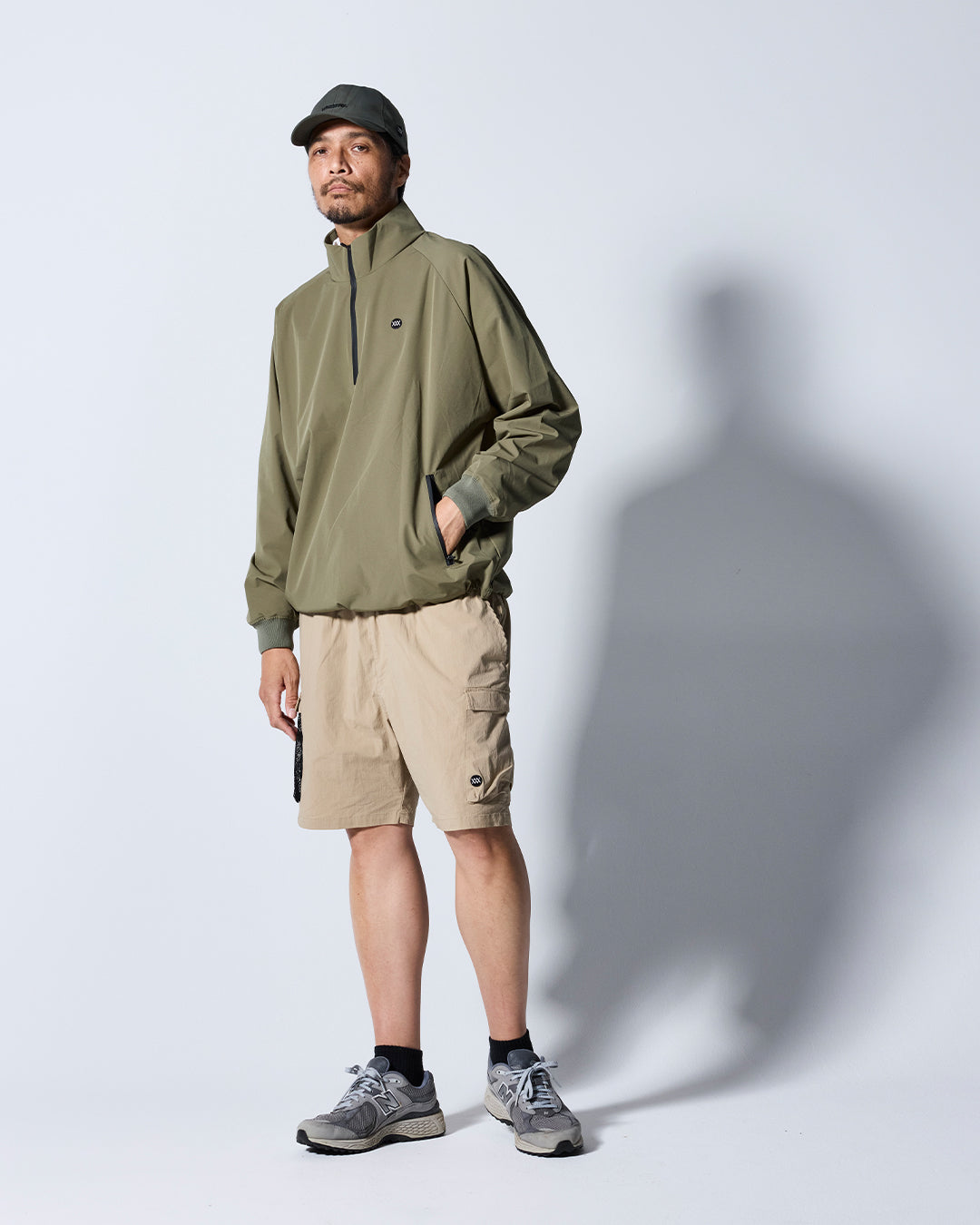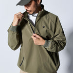 防風素材を使用した保温性の高いハーフジップジャケット。やや寒くなる秋口の温度調整の一枚から、薄手の真冬アウターとしても活躍する一枚。襟は高めで開口広めなのでネックウォーマーやマフラーを首回りに仕込む事が可能です。